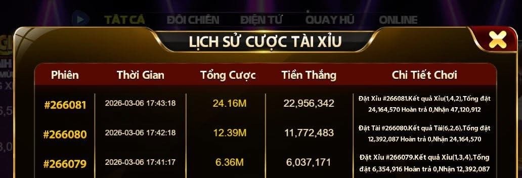 Chúc mừng anh giai nha! Anh vào sảnh tài xỉu live bên em trải nghiệm chơi với mấy bé bên em thử nha!!!