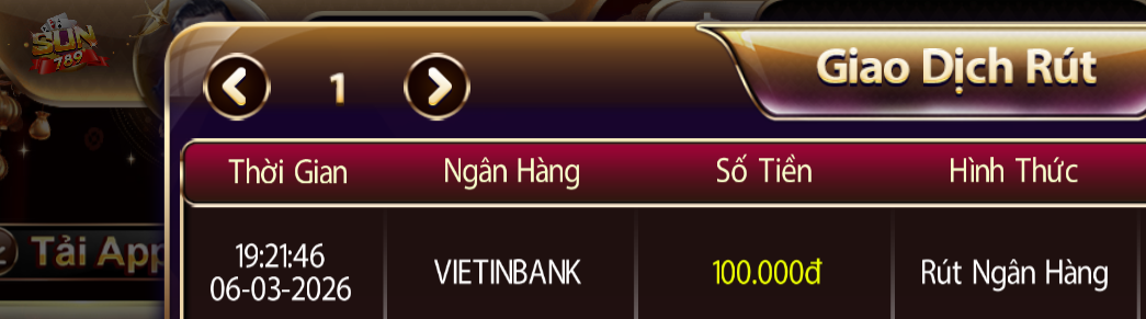 Sun win quy định mức tiền rút tối thiểu cho một giao dịch là 100.000 VNĐ. Nhưng không quy định mức tiền rút tôi đa, vì vậy bạn có thể rút bao nhiều tiền tuỳ thích.